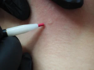 We use new, sterile probes for every treatment and the tweezers and other items go through an autoclave sterilizer, contaminated needles are disposed of in a sharps container after each treatment. Personal protective equipment and disposable gloves are worn to prevent cross contamination. Our clinic operates under strict WHS guidelines and the NSW skin penetration act.